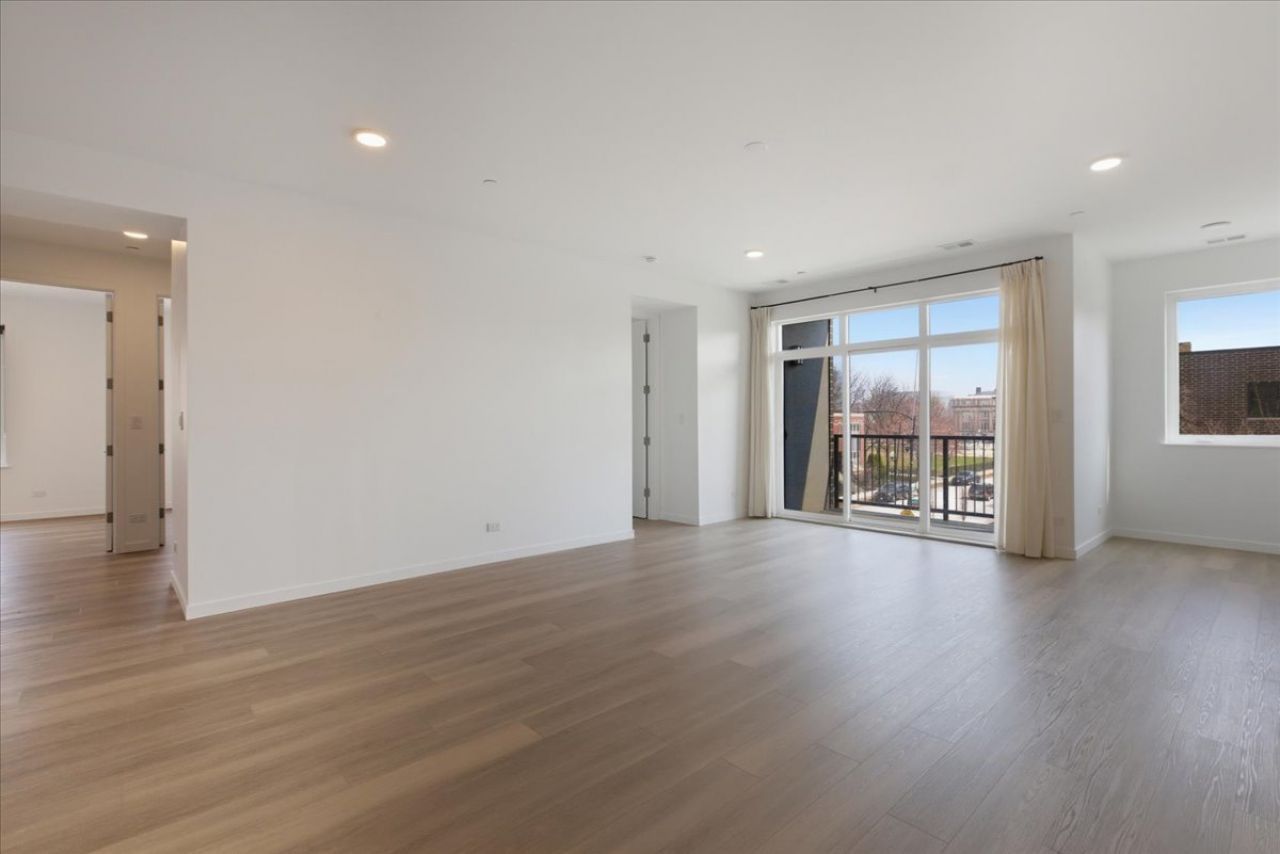 Welcome to The Leavitt, a beautifully designed community offering a spacious 3 Bed, 2 full bath corner unit with bright southern and eastern exposures. The open-concept layout has nine-foot ceilings and a sleek, modern kitchen equipped with custom quartz countertops, soft-close cabinetry, and stainless steel smart appliances. The primary bedroom includes a walk-in closet and an oversized walk-in shower, while the second bathroom offers a large soaking tub for a relaxing experience. Additional highlights include hardwood flooring throughout, a full-sized smart washer and dryer, custom window treatments throughout, and a private balcony. This all-electric building provides a streamlined living experience, with only the electric bill as your responsibility. High-speed internet from Zentra is included in the monthly rent. Constructed with high-quality materials, the building also prioritizes sound absorption between units. The entire building also features wireless keyless entry for added convenience. Gated private parking, both indoor and outdoor is available for an additional amount, along with indoor bicycle storage. Conveniently located less than four blocks from the United Center, the Medical District, and Pete's Fresh Market, the Green Line Damen stop is just a 3-minute drive or 14-minute walk away, with I-290 expressway access two blocks from your door.